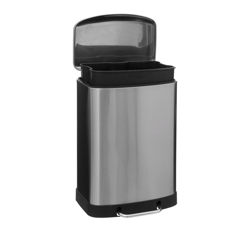 Ο κάδος απορριμμάτων, από την εταιρία 5Five Simply Smart, είναι κατασκευασμένος από ανοξείδωτο ατσάλι, με επεξεργασία κατά των δακτυλικών αποτυπωμάτων. Είναι εξοπλισμένος με πλαστικό και αφαιρούμενο διαμέρισμα χωρητικότητας 50 Lt και ανοίγει με πεντάλ.