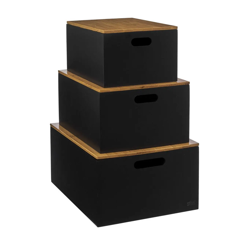 Το σετ, από την εταιρία 5Five Simply Smart, αποτελείται από 3 αποθηκευτικά κουτιά, κατασκευασμένα από MFD ξύλο με καπάκια από μπαμπού.