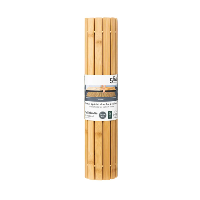 Το χαλάκι μπάνιου, από την εταιρία 5Five Simply Smart, είναι κατασκευασμένο από μπαμπού, καθαρίζεται με ένα απλό σφουγγάρι και τυλίγεται για εύκολη αποθήκευση.