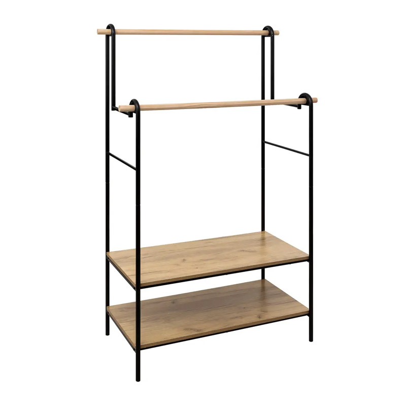 Διπλή Μεταλλική Κρεμάστρα Ρούχων Δαπέδου με 2 Ξύλινα Ράφια 95 x 43.5 x 164 cm 5Five Simply Smart 193408