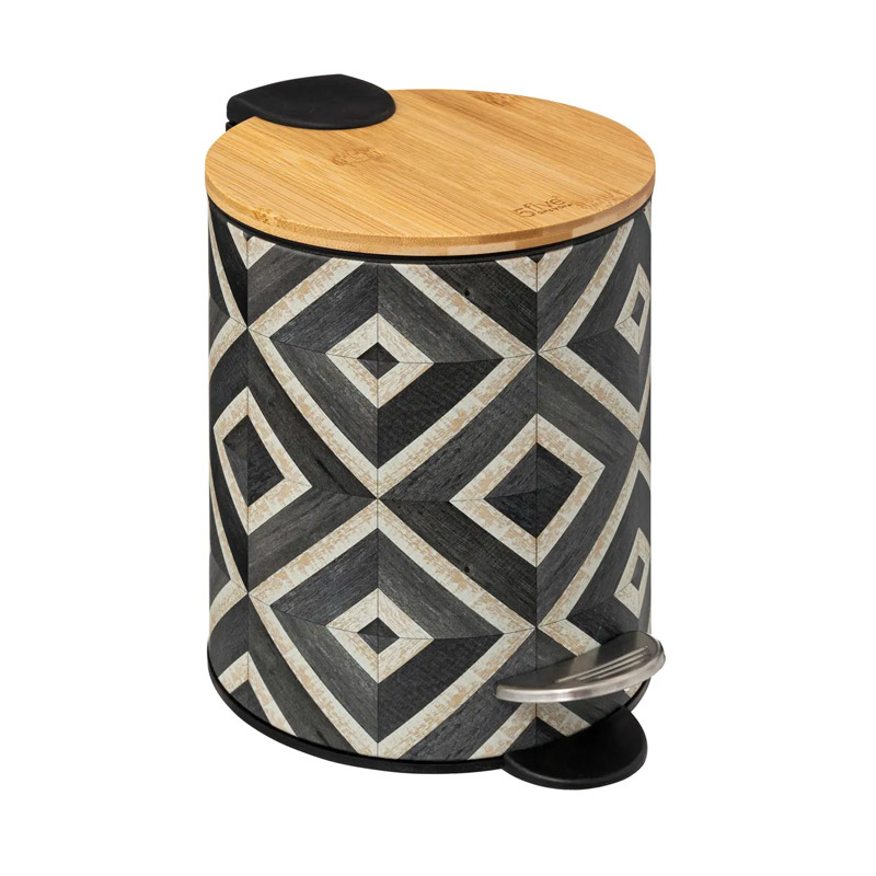 Ο κάδος απορριμμάτων χαρτοδοχείο από την εταιρεία 5Five Simply Smart, είναι κατασκευασμένος από ανθεκτικό μέταλλο και μπαμπού. Χάρη στο αυτόματο άνοιγμα του πεντάλ, μπορείτε να πετάξετε τα απορρίμματά σας, ακόμη και με τα δύο χέρια απασχολημένα και πάνω απ’ όλα, χωρίς να χρειάζεται να αγγίξετε τον κάδο. Ο εσωτερικός πλαστικός κάδος είναι αφαιρούμενος και το καπάκι ανοίγει με ελαφρά πίεση στο πεντάλ και κλείνει αθόρυβα.