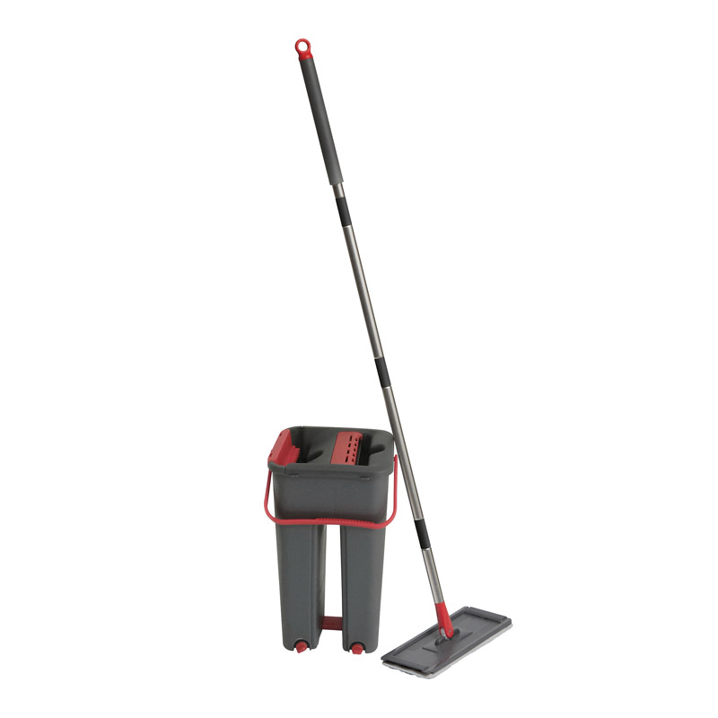Ο κουβάς έχει χωρητικότητα 4 Lt και διαθέτει ένα σύστημα τροχαλίας που πλένει τις ίνες της σφουγγαρίστρας σε κάθε βήμα και αποβάλλει τη βρωμιά, εμποδίζοντας την επιστροφή της στο περιβάλλον. Επιπλέον, ο κουβάς περιλαμβάνει σύστημα αποστράγγισης που αφαιρεί το νερό στο τέλος της διαδικασίας καθαρισμού, έτσι ώστε να μην έρχεστε σε επαφή με τις ακαθαρσίες.