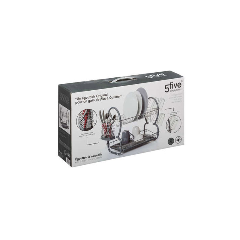 Η πιατοθήκη, από την εταιρία 5Five Simply Smart, διαθέτει μεταλλική κατασκευή. Χωράει 17 πιάτα, έχει 2 επίπεδα, θήκη για τα μαχαιροπήρουνα και 6 άγκιστρα για ποτήρια νερού.