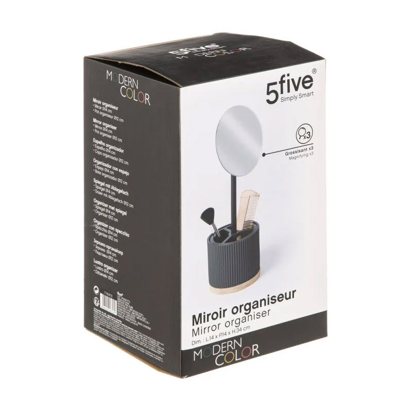 Βάση Οργάνωσης Καλλυντικών με Καθρέπτη 14 x 14 x 35 cm Χρώματος Ανθρακί 5Five Simply Smart 174681B