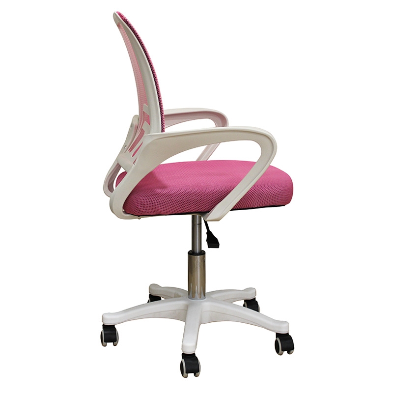 A1850 S πολυθρόνα γραφείου με ιδιαίτερο σχεδιασμό στην πλάτη και στρογγυλεμένα μπράτσα ώστε να ξεκουράζουν σε πολύωρη χρήση. Η πλάτη είναι ενδεδυμένη με ροζ mesh ύφασμα για να αποτρέπει την εφίδρωση.Το κάθισμα διαθέτει μηχανισμό αυξομείωσης του ύψους με αμορτισέρ ενώ η βάση είναι πλαστική σε λευκό χρώμα.