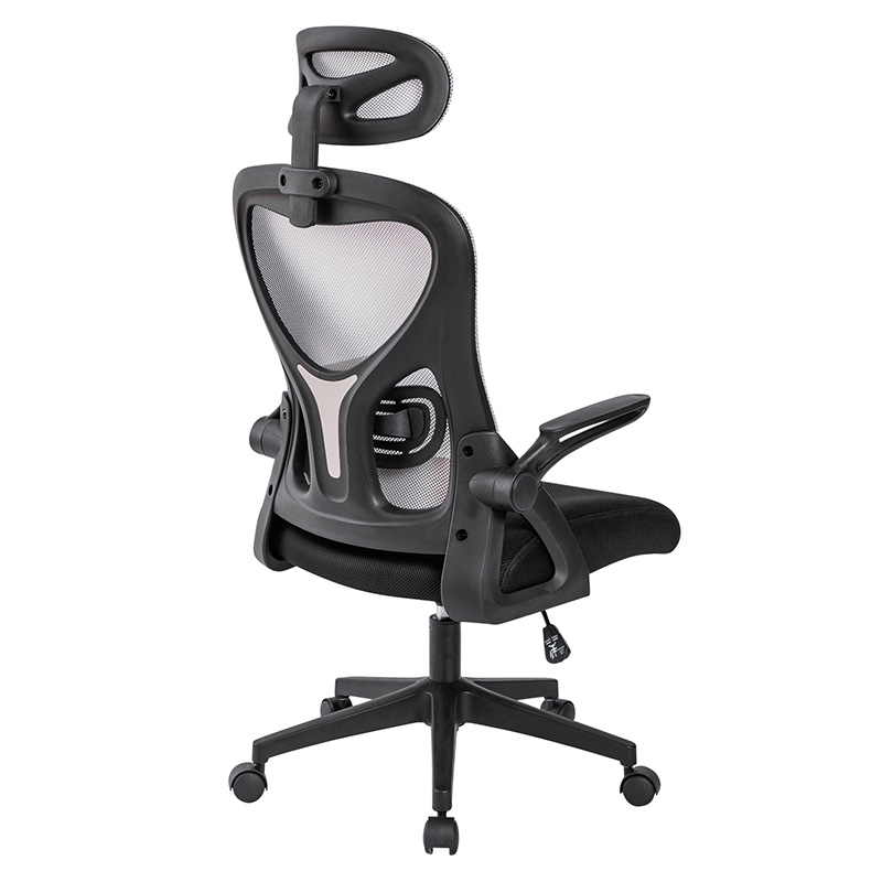 A8980 πολυθρόνα γραφείου με mesh ύφασμα στο κάθισμα μαύρου χρώματος καθώς επίσης και ανατομική πλάτη σε mesh ύφασμα χρώματος γκρί για να αναπνέει η πλάτη.Διαθέτει προσκέφαλο για σωστή στήριξη του κεφαλιού και πτυσσόμενα μπράτσα,ρυθμιζόμενο ύψος,πλαστικό πόδι και ρόδες για εύκολη μετακίνηση.