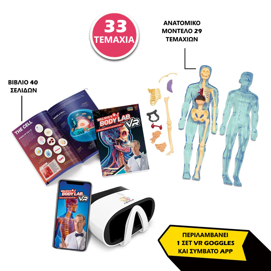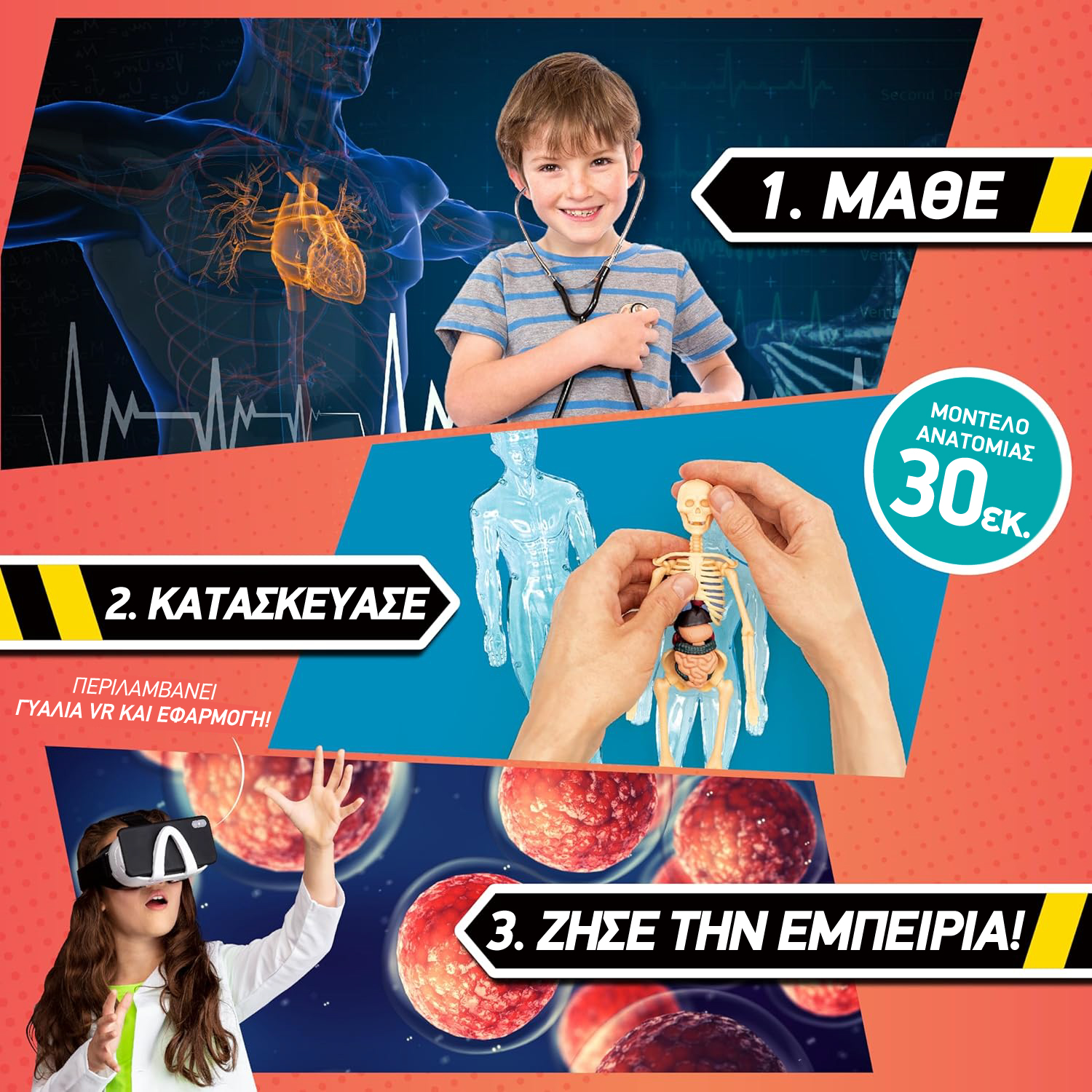 • Τι περιλαμβάνεται στο κουτί: Αυτό το σετ δραστηριοτήτων περιλαμβάνει ένα μοντέλο ανθρώπινης ανατομίας 32 κομματιών,  βιβλίο 96 σελίδων και γυαλιά εικονικής πραγματικότητας!