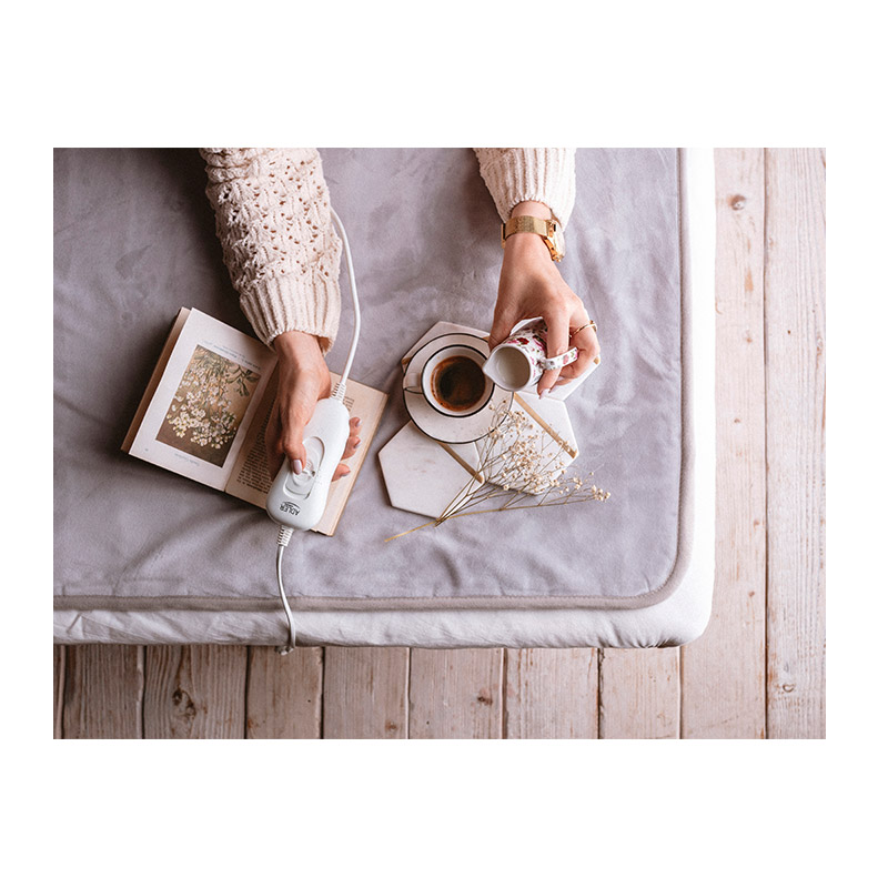 Η κουβέρτα είναι κατασκευασμένη από μαλακό και απαλό ύφασμα και μπορείτε να το ξεπλύνετε εύκολα αφού αποσυνδέσετε το χειριστήριο θερμοκρασίας και το καλώδιο τροφοδοσίας. Ο θερμοστάτης σας επιτρέπει να επιλέξετε τη θερμοκρασία ανάμεσα από 4 επίπεδα και να διασφαλίσετε την προστασία σας από την υπερθέρμανση.