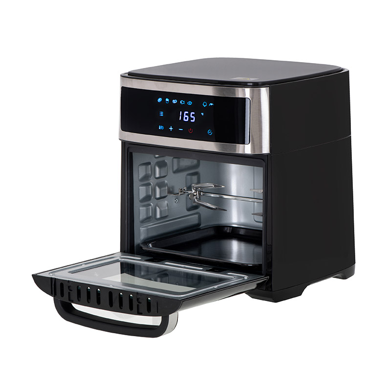 Ο φούρνος, έχει ρυθμιζόμενη θερμοκρασία από 45 έως 200 ° C. Το περιστρεφόμενο καλάθι τηγανίσματος διευκολύνει την προετοιμασία μικρότερων προϊόντων: πατατάκια, γαρίδες, λαχανικά. Η χωρητικότητα του φούρνου φτάνει τα 13 Lt, ώστε να μπορείτε να μαγειρέψετε αμέσως ένα γεύμα για όλη την οικογένεια ή να ψήσετε το αγαπημένο σας σνακ. Διαθέτει μια καθαρή λευκή οθόνη LED και μια οθόνη αφής που διευκολύνει την επιλογή του προγράμματος ψησίματος που προτιμάτε, καθώς και τη μέτρηση του χρόνου. Η δυνατότητα καθυστέρησης της έναρξης λειτουργίας από 1 έως 720 λεπτά, διευκολύνει τον προγραμματισμό ενός δείπνου για όλη την οικογένεια.