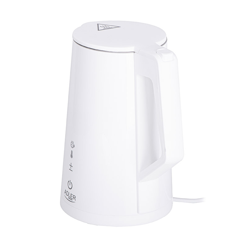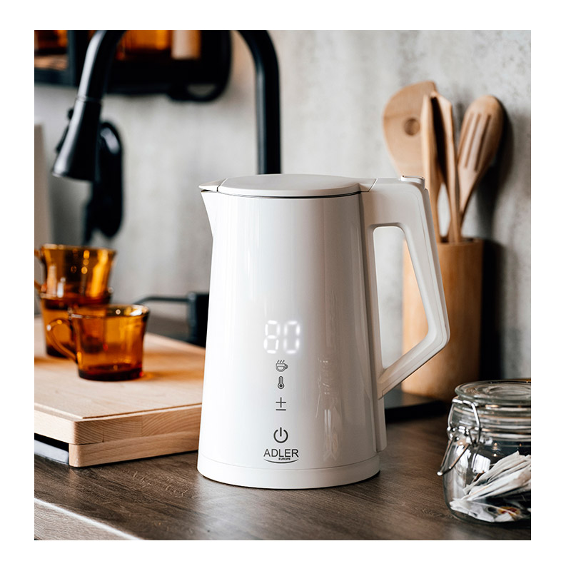 Ο ασύρματος ηλεκτρικός βραστήρας, από την εταιρία Adler, διαθέτει ισχύ 2200 W. Η επίπεδη θερμάστρα είναι κατασκευασμένη από ανοξείδωτο ατσάλι, για μακροχρόνια χρήση. Το περίβλημα με διπλά τοιχώματα θα μειώσει τον κίνδυνο εγκαυμάτων και το ηχητικό σήμα κατά την εκκίνηση και μετά το βράσιμο του νερού, βοηθά στον έλεγχο της λειτουργίας της συσκευής.