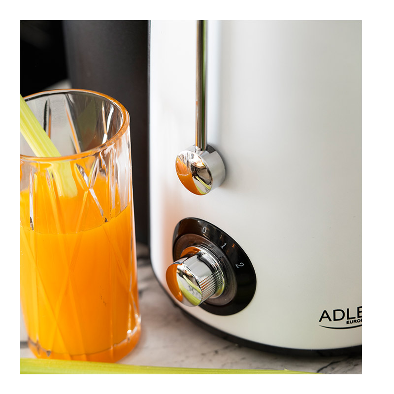 Ο αποχυμωτής, από την εταιρία Adler, έχει ισχύ 1000 W. Είναι φυγοκεντρικός, που σημαίνει ότι λειτουργεί σε υψηλές στροφές, και αφού πρώτα τεμαχίσει τα φρούτα ή τα λαχανικά που θα τοποθετήσετε, στη συνέχεια τα περνά μέσα από ένα σουρωτήρι φτιάχνοντας σε σύντομο χρονικό διάστημα χυμό.