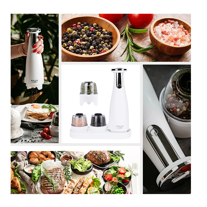 Σετ Ηλεκτρικός Μύλος Μπαχαρικών με Βάση 3 τμχ Χρώματος Λευκό Adler AD-4449w