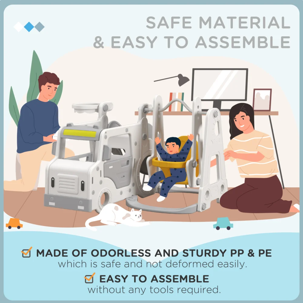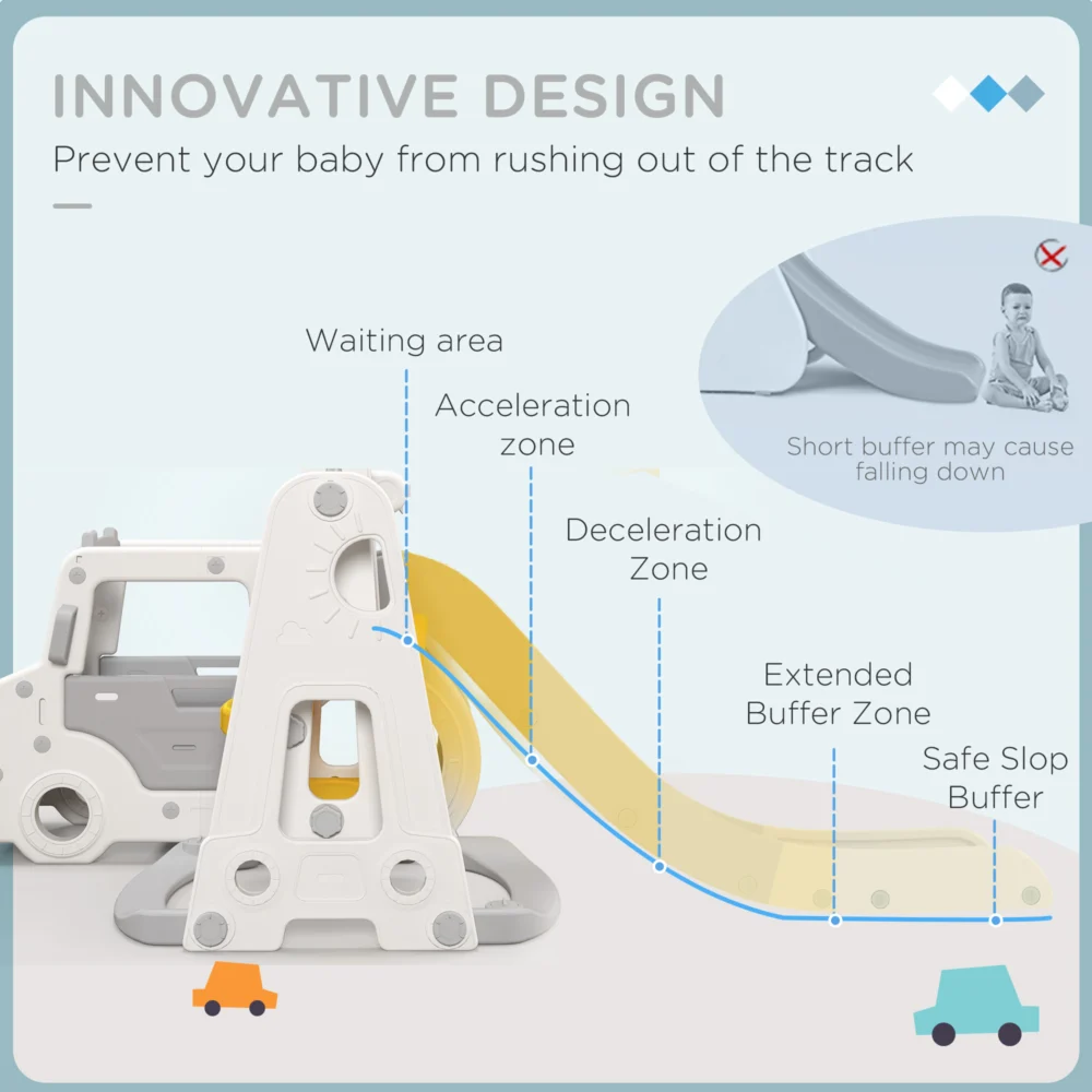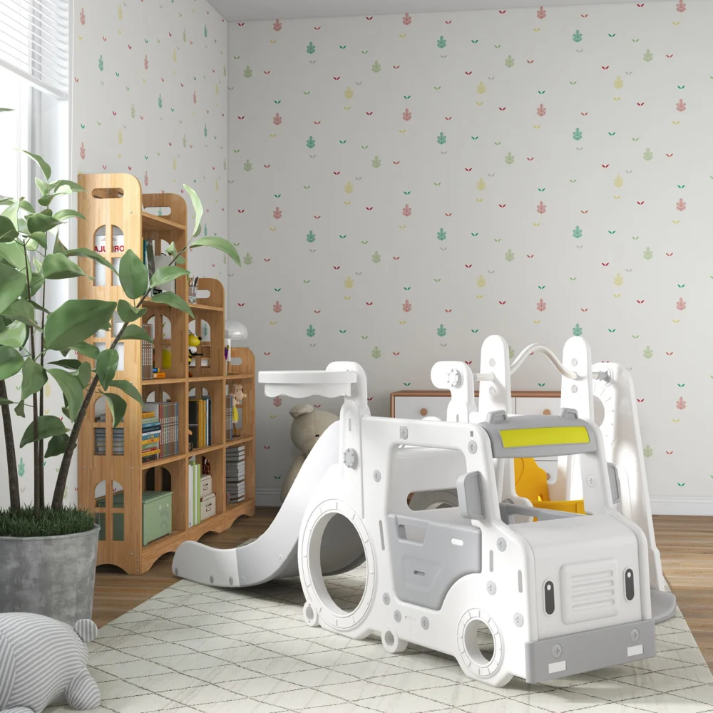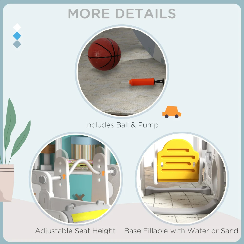 Σετ Slide AIYAPLAY για παιδιά 18-48 μηνών με κούνια, αυτοκίνητο και καλάθι, 201x151x87,5cm, Λευκό 331-041V00WT