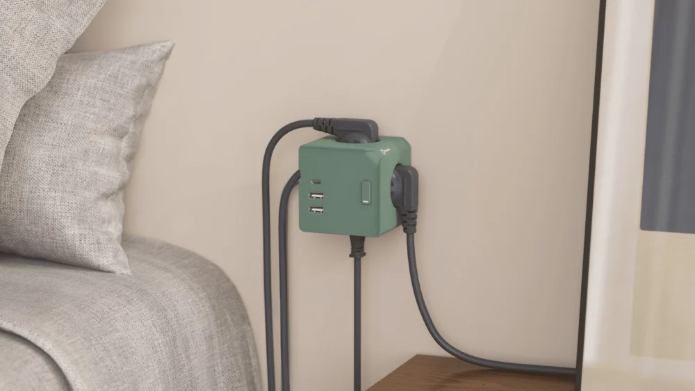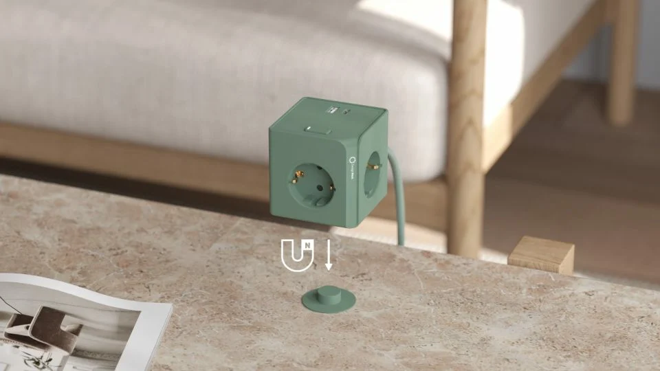 Allocacoc® PowerCube MagnetDock USB A+C PD 45W DE με διακόπτη σε χρώμα πράσινο χακί