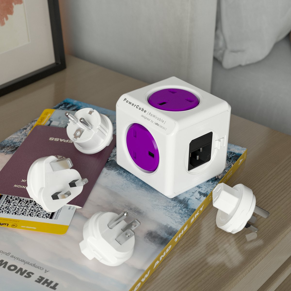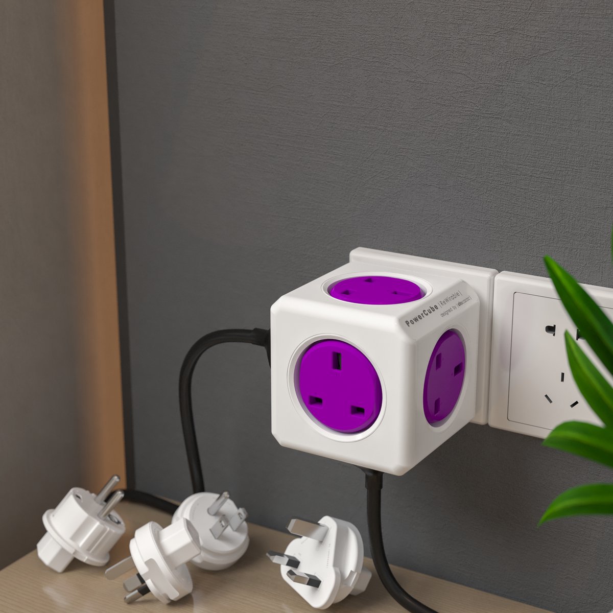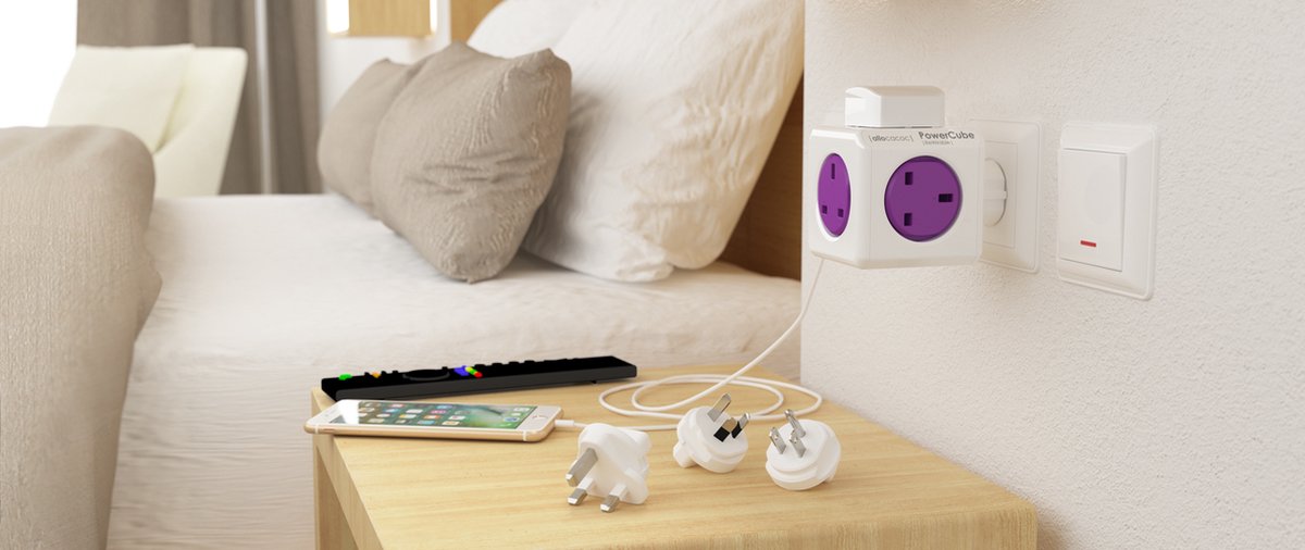 Allocacoc® PowerCube |ReWirable| Πολύπριζο 5 θέσεων UK & 4x plugs Μωβ – 1840/UKRW4P