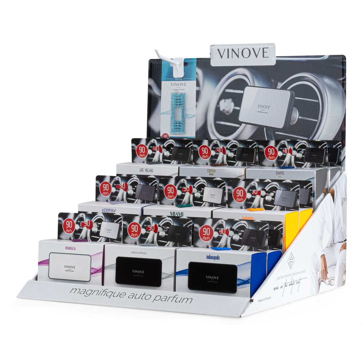 Οι δυσάρεστες οσμές στο όχημα απαιτούν αξιόπιστα προϊόντα φρεσκάδας. Οι επαγγελματίες χρειάζονται πρακτικές λύσεις προβολής. Το display VINOVE προσφέρει ολοκληρωμένη πρόταση.