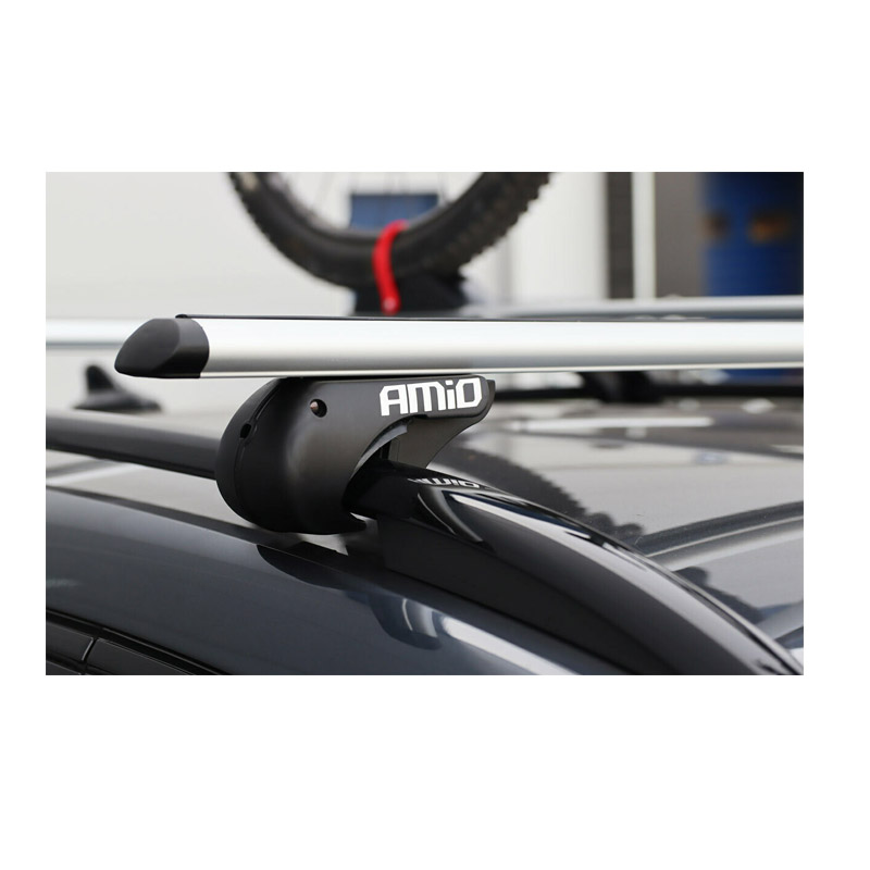 Οι μπάρες οροφής αυτοκινήτου, από την εταιρία AMiO, έχουν μήκος 120 cm και είναι κατασκευασμένες από αλουμίνιο, χαρακτηριστικό που τις κάνει πιο ελαφριές από τις ατσάλινες και τις μεταλλικές γενικότερα. H κλειδαριά με τις οποίες είναι εξοπλισμένες προσφέρει καλύτερη αντικλεπτική προστασία.