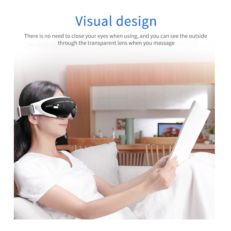 Η συσκευή, από την εταιρία Anlan, προσφέρει χαλαρωτικό μασάζ μέσω ζεστού αέρα στους 42 ° C στην περιοχή των ματιών, ανακουφίζοντας αποτελεσματικά από την κούραση. Δεν επηρεάζει την όραση, έχει επαναφορτιζόμενη μπαταρία 1200 mAh, αυτόματη απενεργοποίηση σε 15 λεπτά και ενσωματωμένη μουσική.