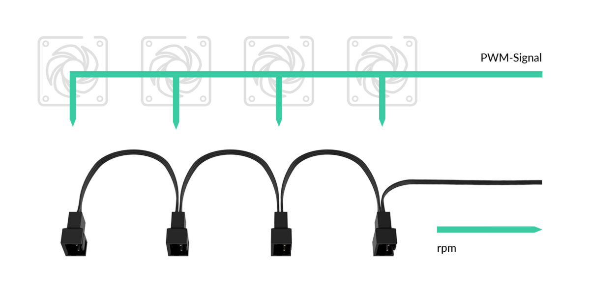 Το ρυθμισμένο από εσάς σήμα PWM θα αποστέλλεται συγχρονισμένα σε όλους τους ανεμιστήρες που είναι συνδεδεμένοι στο καλώδιο διαχωρισμού ανεμιστήρων 4-Pin PWM. Οι στροφές ανά λεπτό της πρώτης υποδοχής ανεμιστήρα θα διαβαστούν και θα ανατροφοδοτηθούν στο σύστημά σας.