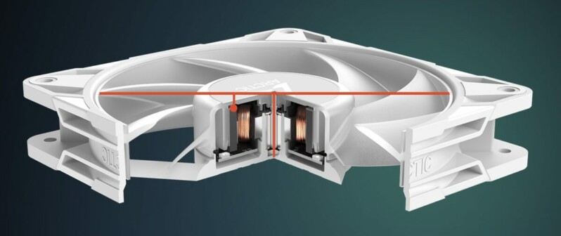 Ο ανεμιστήρας προσφέρει μεγαλύτερη απόδοση σε χαμηλές ταχύτητες με υψηλότερη ροή αέρα από τα προηγούμενα μοντέλα και στατική πίεση σε μόλις 25 dB(A) – ιδανικός για αθόρυβη, ισχυρή ψύξη.