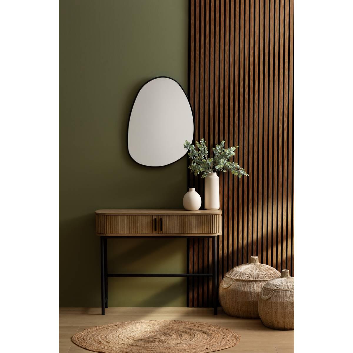 Η κονσόλα δύο θυρών “Colva” είναι μια σκανδιναβική κονσόλα. Η δομή της, η κορυφή, οι πόρτες και το ράφι είναι κατασκευασμένα από ινώδες ξύλο και το επίχρισμα είναι δρυς, για ένα σοβαρό και σύγχρονο ύφος.