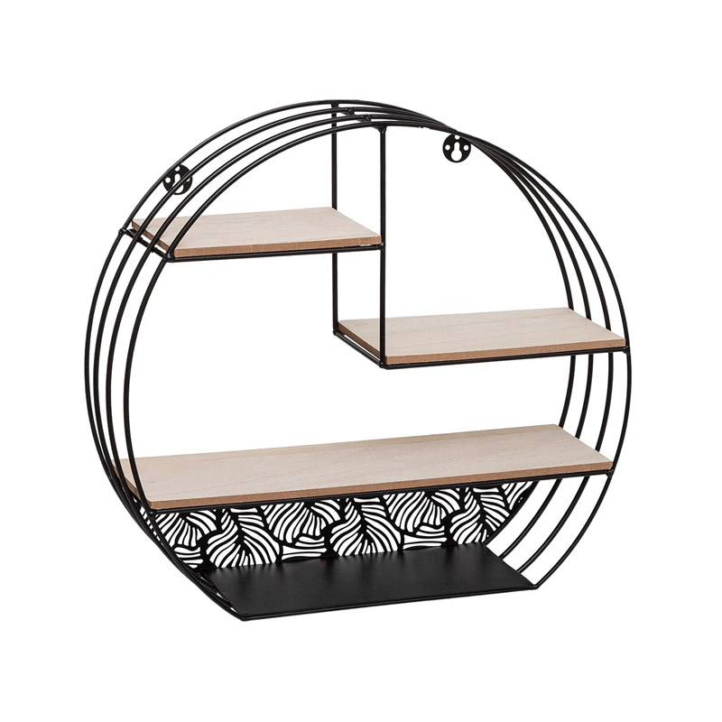 Επιτοίχια Μεταλλική Στρογγυλή Ραφιέρα με 3 Ξύλινα Ράφια 39.3 x 10 x 36 cm Atmosphera 166731A