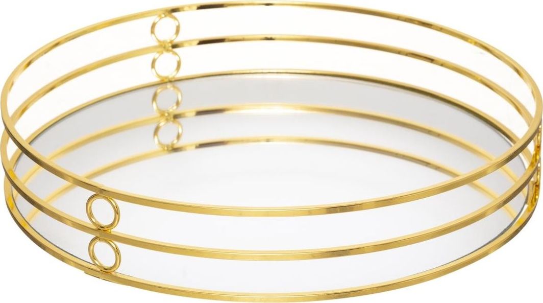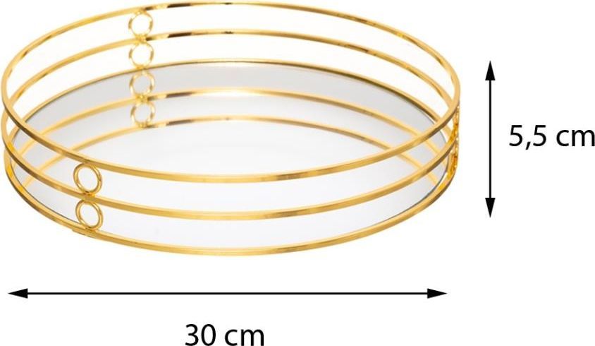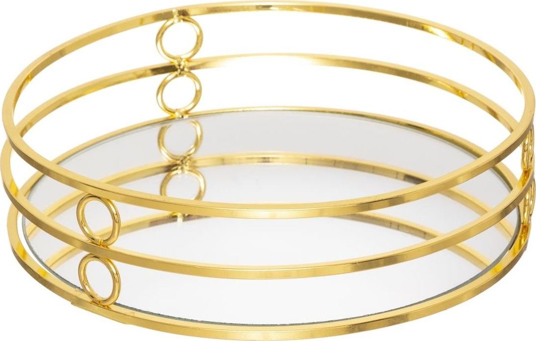 Σετ δίσκων κατασκευασμένων από γυαλισμένο σε καθρέφτη χρυσό μέταλλο και επιφάνεια καθρέφτη. Η εντυπωσιακά λαμπερή και ανακλαστική επιφάνεια τους καθιστά ένα ξεχωριστό διακοσμητικό στοιχείο. Οι δίσκοι μπορούν να χρησιμοποιηθούν για το σερβίρισμα γλυκών ή φρούτων. Επίσης, είναι ιδανικοί ως βάση ή πιατέλα για κεριά.