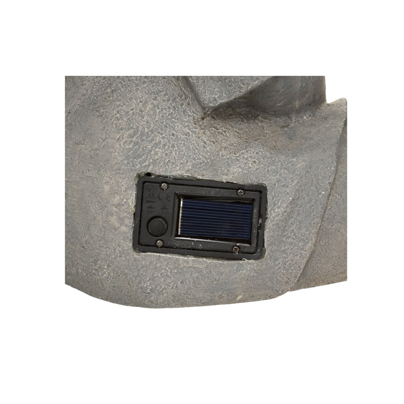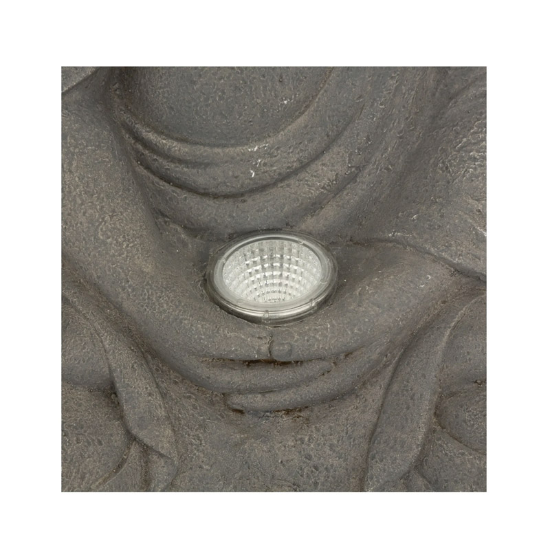 Το ηλιακό φωτιστικό δαπέδου, από την εταιρία Atmosphera, συγκεντρώνει και αποθηκεύει ηλιακή ενέργεια για τη λειτουργία του, ώστε να μη χρειάζεται να συνδεθεί σε παροχή ρεύματος. Διαθέτει αισθητήρα φωτός που του επιτρέπει να ενεργοποιείται αυτόματα κατά τη δύση του ηλίου. Είναι κατάλληλο για εξωτερικό χώρο, ώστε να φορτίζει και τη νύχτα να φωτίζει η λάμπα που κρατά στα χέρια του ο Βούδας.