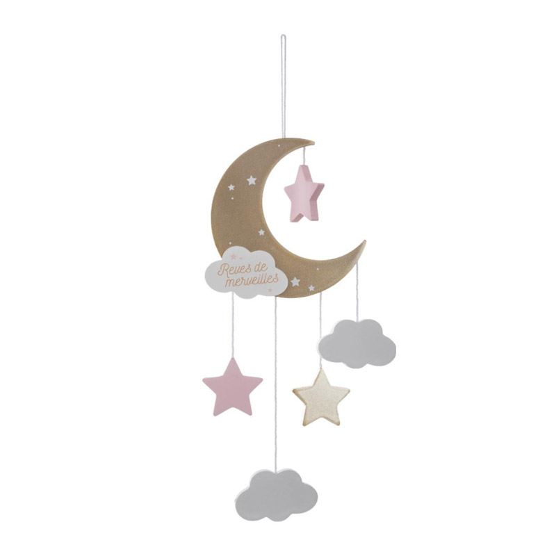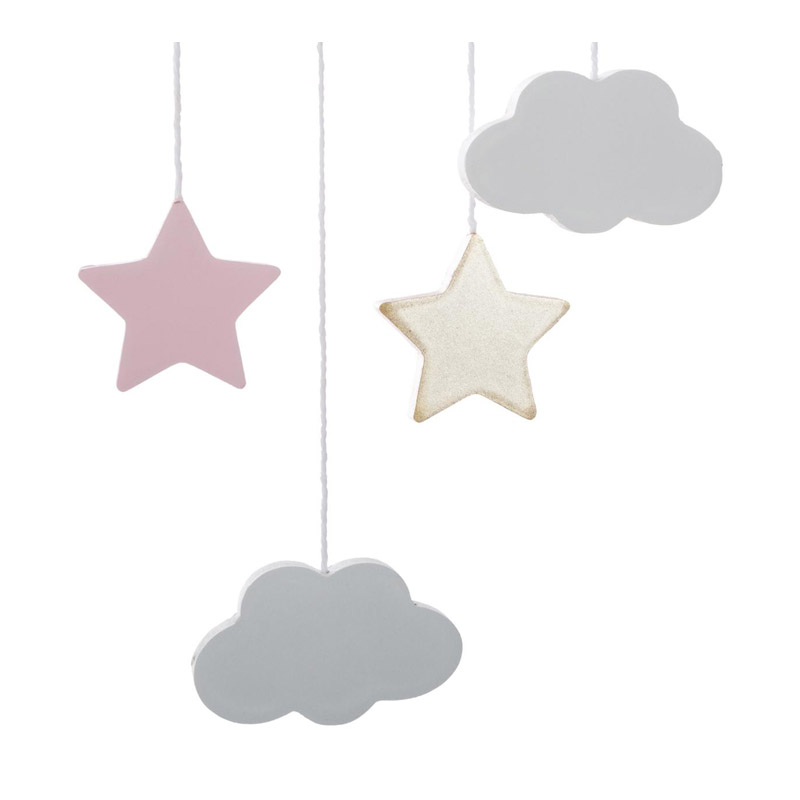 Το παιδικό κρεμαστό διακοσμητικό, από την εταιρία Atmosphera, θα κάνει την ατμόσφαιρα στο παιδικό δωμάτιο ακόμα πιο μαγική. Απεικονίζει το φεγγάρι, τα αστέρια και τα σύννεφα κρεμασμένα σε ένα κορδόνι. Τα υποτονικά, παστέλ χρώματά του, ταιριάζουν απόλυτα με τη διακόσμηση του παιδικού δωματίου.