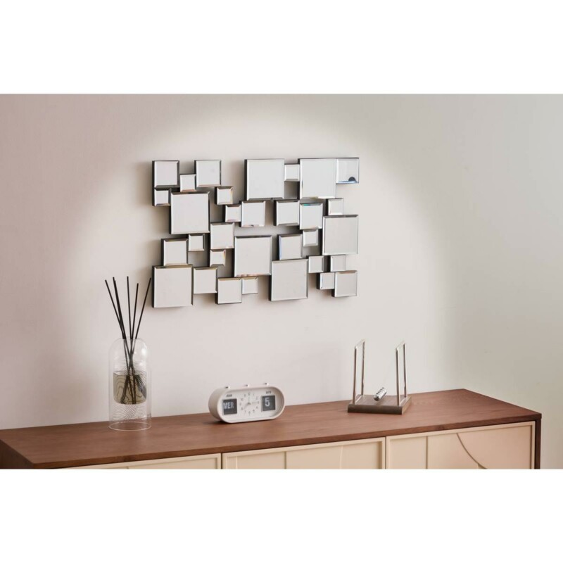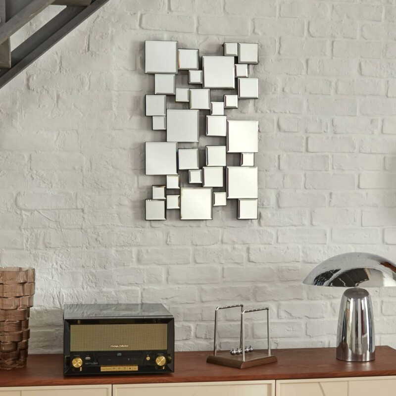 Η διακόσμηση τοίχου Jandira είναι κατασκευασμένη με γυάλινα στοιχεία διαφόρων μεγεθών. Μπορεί να εγκατασταθεί κατακόρυφα ή οριζόντια σύμφωνα με τις προτιμήσεις σας. Παίξτε με το φως χρησιμοποιώντας καθρέφτες Atmosphera για να δώσετε την εντύπωση ενός μεγαλύτερου χώρου.