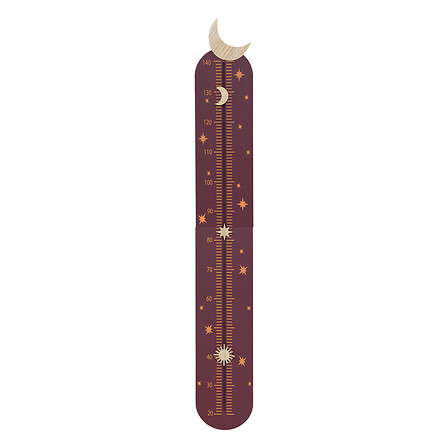 Από τη συλλογή Nomad Princess, ο ξύλινος μετρητής ύψους Bella είναι ένας υπέροχος και διασκεδαστικός τρόπος να παρακολουθείτε την ανάπτυξη του παιδιού σας. Διαθέτοντας ντεκόρ εμπνευσμένο από τον ουρανό, σε ένα βαθύ δαμασκηνί φόντο με κινούμενα στοιχεία όπως ο ήλιος, το φεγγάρι και τα αστέρια, προσφέρει έναν μαγικό τόνο στο παιδικό δωμάτιο!