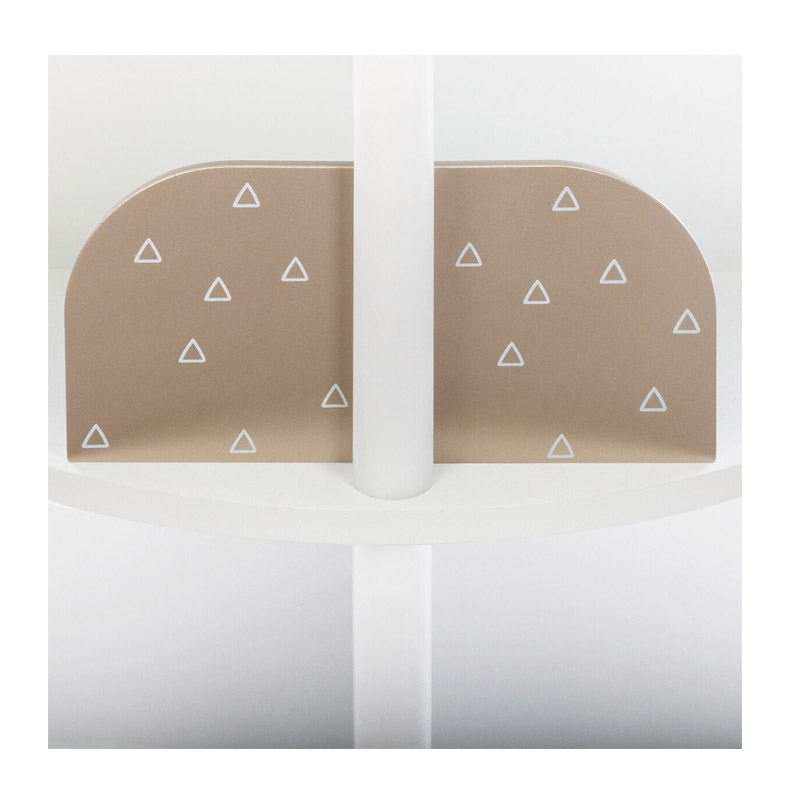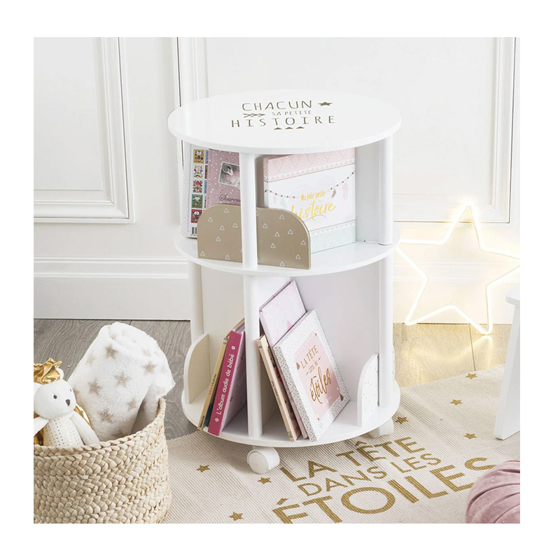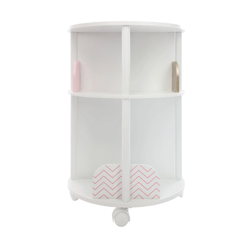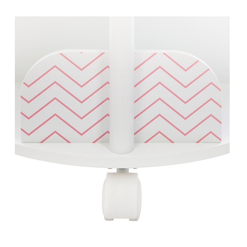 Η παιδική βιβλιοθήκη, από την εταιρία Atmosphera, είναι κατασκευασμένη από ξύλο MDF κατηγορίας E1 σε λευκή απόχρωση με ροζ-χρυσές λεπτομέρειες. Διαθέτει ροδάκια στο κάτω μέρος για να μπορείτε εύκολα να την γυρίζετε στην μεριά που επιθυμείτε ή να την φέρετε κοντά στο παιδικό κρεβάτι.