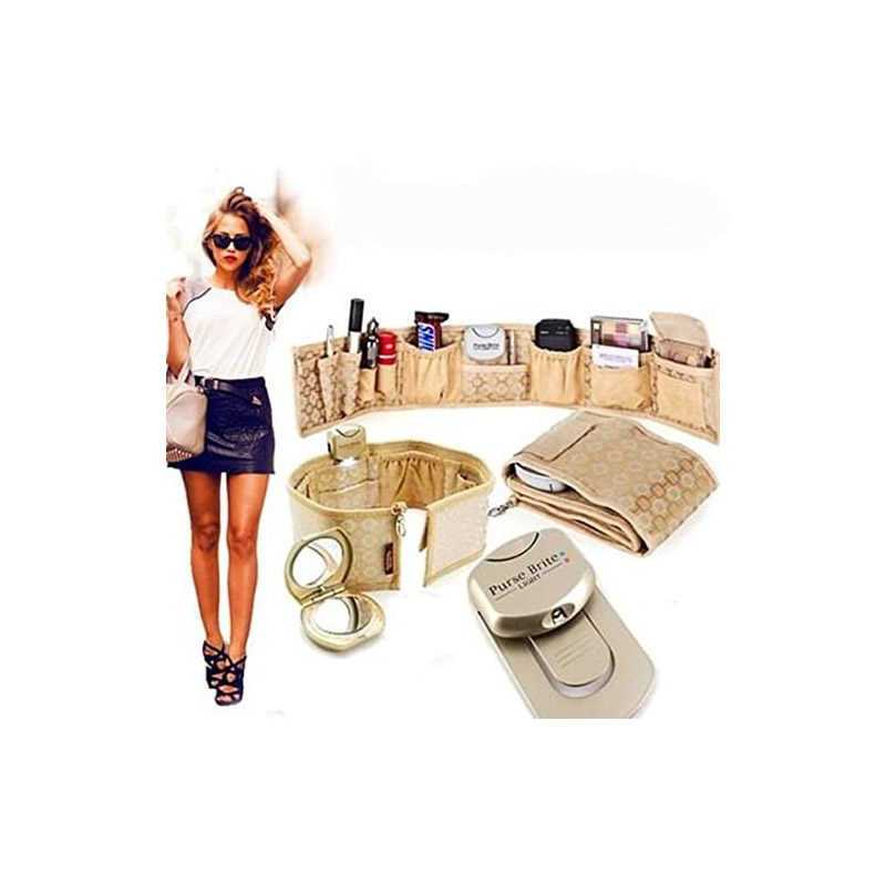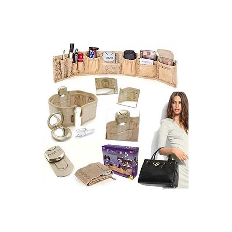 Το organizer τσάντας, από την εταιρία Bakaji, θα σας βοηθήσει να έχετε τακτοποιημένο το εσωτερικό της τσάντας σας. Διαθέτει πάνω από 10 θήκες για προϊόντα μακιγιάζ, καλλυντικά, κλειδιών, σημειωματάρια, νομίσματα, λογαριασμούς και οτιδήποτε άλλο χρειάζεστε. Είναι επίσης εξοπλισμένο με ένα LED φως με χειροκίνητη παλμική ανάφλεξη, που θα σας κάνει να έχετε φως ακόμα και στις πιο δύσκολες περιπτώσεις. Εύκολο στη χρήση, απλά τοποθετήστε το μέσα στη τσάντα κατά μήκος της περιμέτρου και γαντζώστε το με το ειδικό καραμπίνερ.