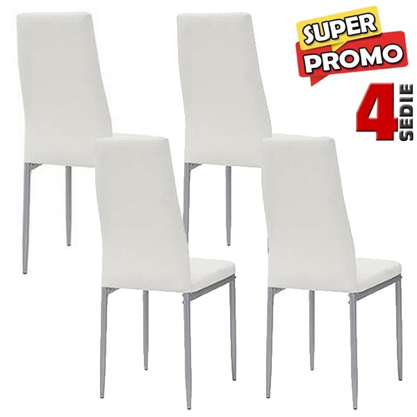 BAKAJI Σετ 4 Μοντέρνες Καρέκλες Τραπεζαρίας Σαλονιού Κουζίνας Με Επένδυση Λευκής Οικολογικής Δερματίνης 02661374