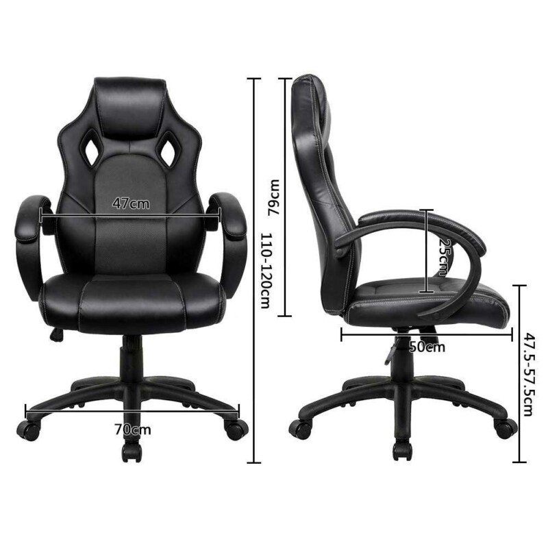 1 x Καρέκλα Πολυθρόνα Γραφείου Διευθυντική με Περιστρεφόμενους Τροχούς Σπορ Racer Gaming Μαύρη