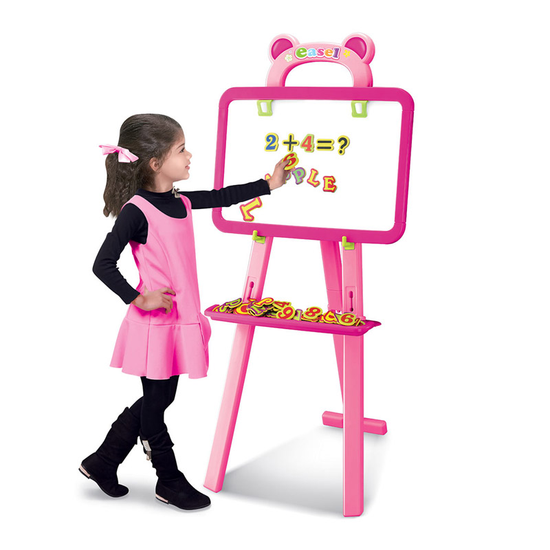 Ο πίνακας τοποθετείται σε ένα υπέροχο πλαστικό τρίποδο διακοσμημένο με ροζ αυτιά από αρκουδάκι. Το τρίποδο, έχει μία εύχρηστη θήκη όπου μπορείτε να τοποθετήσετε όλα τα εργαλεία σχεδίασής, ενώ ο πίνακας μπορεί να τοποθετηθεί σε 2 διαφορετικά ύψη. Η ελάχιστη ηλικία που συνιστάται από τον κατασκευαστή για τη χρήση του προϊόντος είναι 3+ έτη.