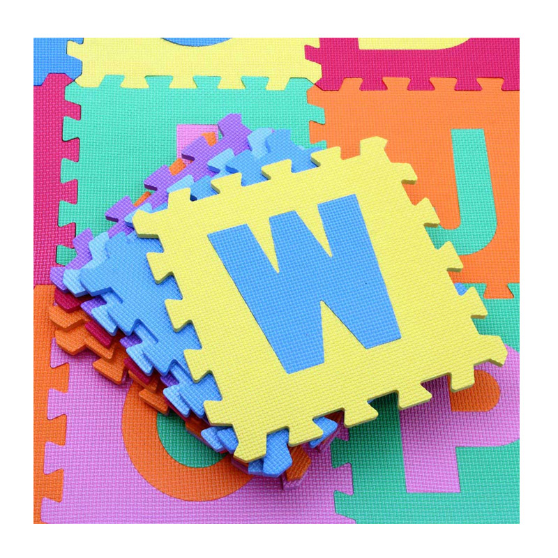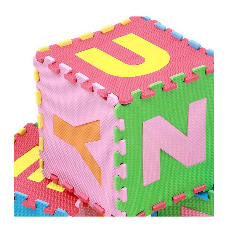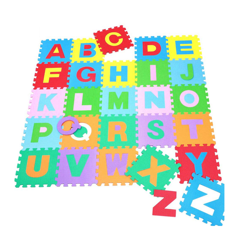 Το αφρώδες παζλ, από την εταιρεία Bakaji, αποτελείται από 60 κομμάτια (26 γράμματα του αγγλικού αλφαβήτου και αποσπώμενα μέρη), κατασκευασμένα από υψηλής ποιότητας, ασφαλή αφρό EVA και είναι ιδανικά για παιχνίδι, χωρίς τραυματισμούς από το σκληρό έδαφος. Είναι ανθεκτικά στην υγρασία, θερμομονωτικά και δίνουν τη δυνατότητα κατασκευής χρωματιστών κύβων, μονοπατιών, λέξεων και εύθυμων σπιτιών