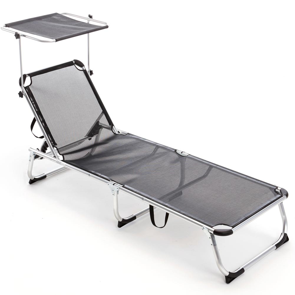 BAKAJI Ξαπλώστρα με Σκίαστρο Παραλίας Γκρι Αλουμινίου Πτυσσόμενη 02816609