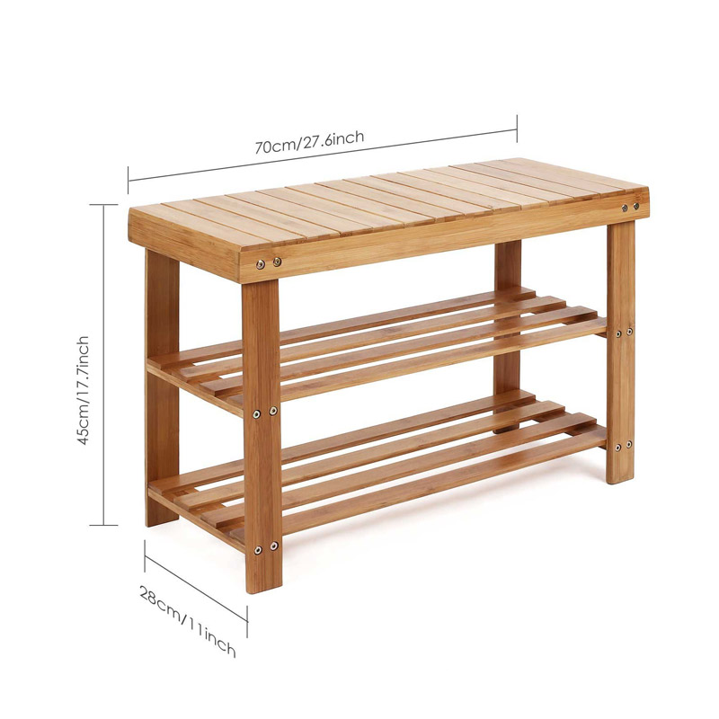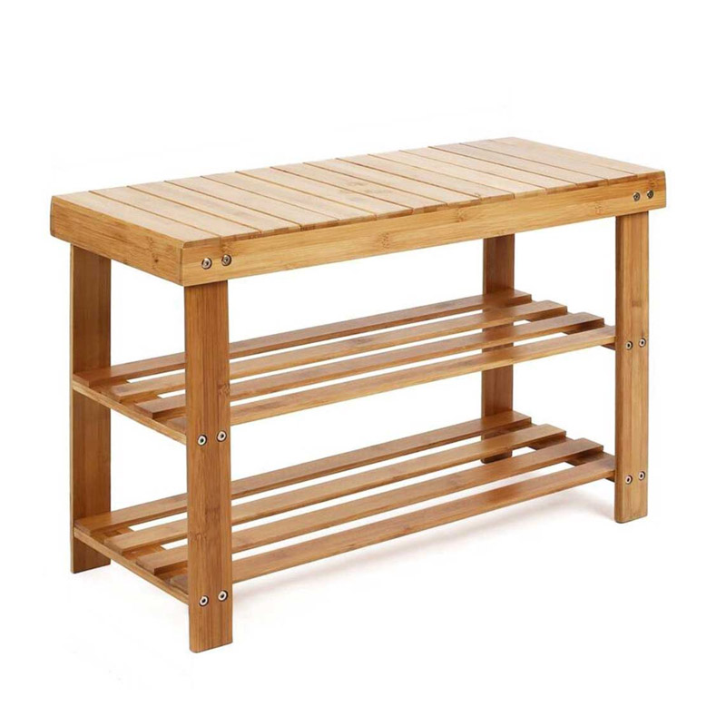Ξύλινη Παπουτσοθήκη από Μπαμπού με 2 Ράφια και Πάγκο 70 x 28 x 45 cm Bakaji 02830302
