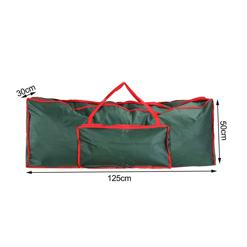 Η τσάντα, από την εταιρία Bakaji, είναι κατάλληλη για να προστατέψετε και να αποθηκεύσετε το χριστουγεννιάτικο δέντρο σας κατά τους μήνες αδράνειας. Κατασκευασμένη εξ ολοκλήρου από πολυεστερικό ύφασμα με ανθεκτική επίστρωση PVC, είναι εξοπλισμένη με μπροστινή τσέπη για αποθήκευση αξεσουάρ και μικρών χριστουγεννιάτικων διακοσμητικών, πρακτικές λαβές για μεταφορά και κλείσιμο με φερμουάρ.