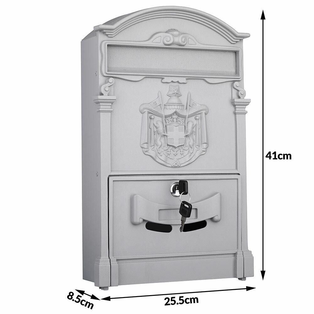 Αυτό το γραμματοκιβώτιο είναι κατασκευασμένο εξ ολοκλήρου από χυτοπρεσαριστό αλουμίνιο γαλβανισμένο εν θερμώ και βαμμένο με πούδρα σε ένα κομψό γκρι χρώμα.