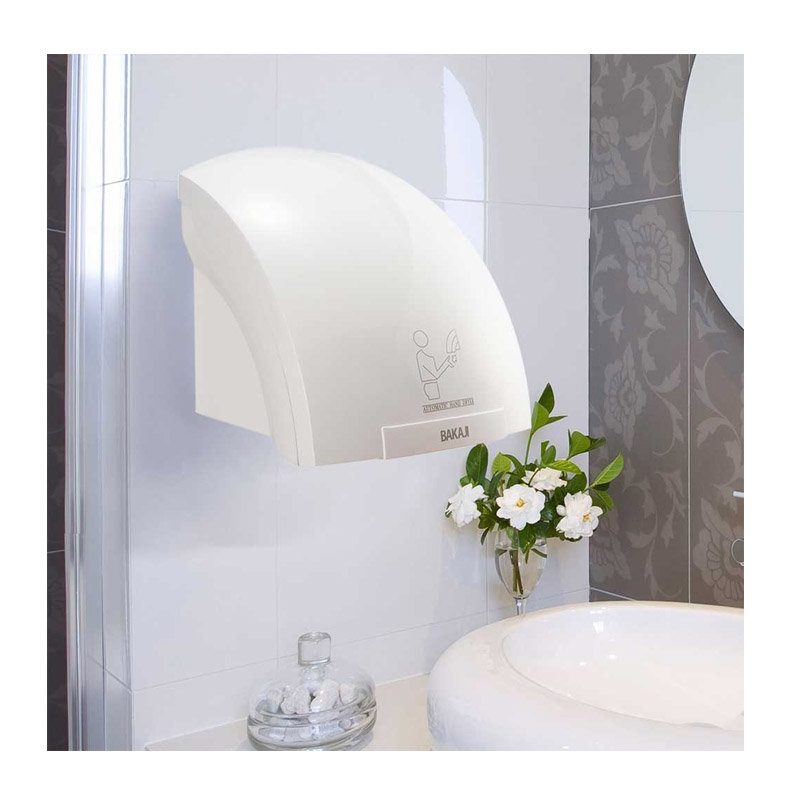 Με τον αυτόματο ηλεκτρικό στεγνωτήρα χεριών, από την εταιρία Bakaji, μπορείτε να στεγνώσετε τα χέρια σας με πρακτικό και γρήγορο τρόπο, χωρίς να χρειάζεται να καταναλώνετε τεράστιες ποσότητες χαρτιού και πετσετών. Εξοπλισμένος με απίστευτη ισχύ 2000 W που παρέχει υψηλή ισχύ στεγνώματος με θερμοκρασία που φτάνει έως και τους 80 βαθμούς. Με αυτόματη λειτουργία χάρη στο ενσωματωμένο φωτοκύτταρο στο εσωτερικό του, το οποίο ενεργοποιεί αυτόματα τον πίδακα αέρα μόλις φέρετε τα χέρια σας σε αυτό, εκπέμποντας ζεστό αέρα για 60 δευτερόλεπτα και στη συνέχεια απενεργοποιείται ανεξάρτητα.