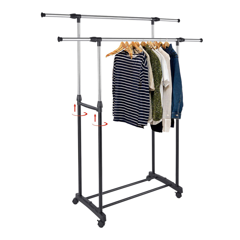 Διπλή Μεταλλική Τροχήλατη Κρεμάστρα Ρούχων Δαπέδου 80-150 x 43 x 90-160 cm Bakaji 02831956