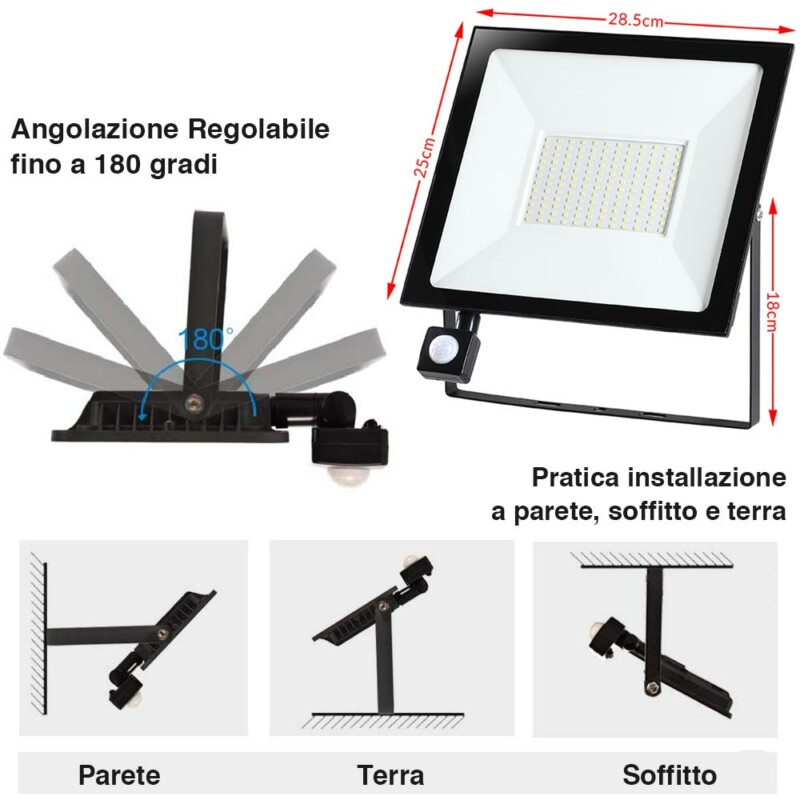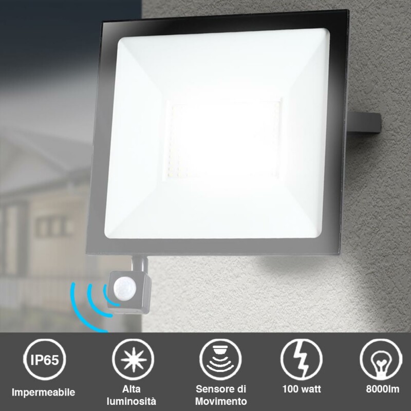 - 1 x LED Προβολέας 100W Υψηλής Φωτεινότητας 8000lm με Αισθητήρα Κίνησης