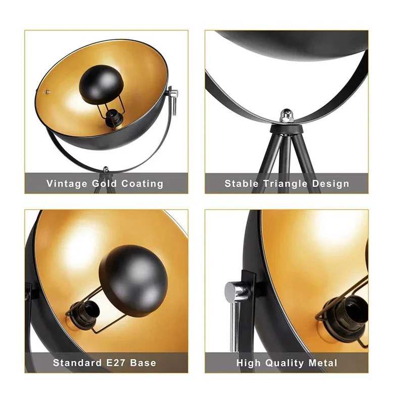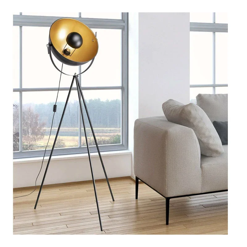 Το φωτιστικό δαπέδου, από την εταιρία Bakaji, είναι κατασκευασμένο εξ ολοκλήρου από υψηλής ποιότητας μέταλλο σε κομψό μαύρο χρώμα, εξοπλισμένο με ένα μεγάλο αμπαζούρ με εσωτερικό χρυσό χρώμα που το κάνει πραγματικά μοναδικό και ιδιαίτερο.