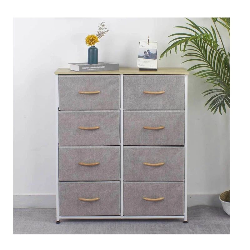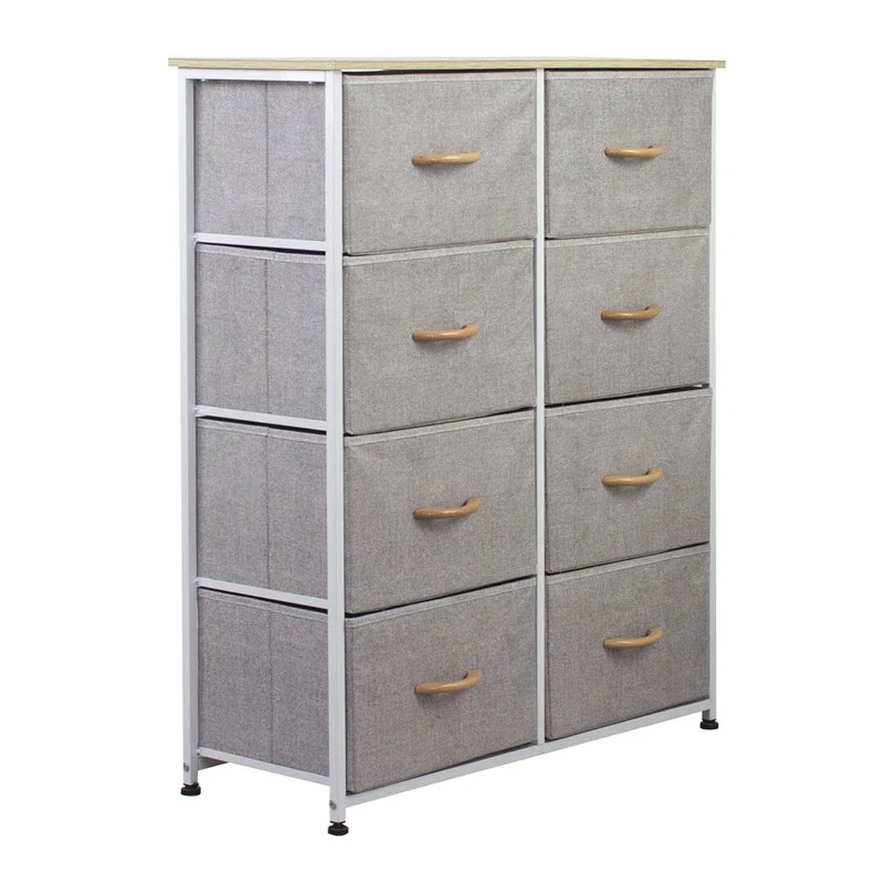 Η συρταριέρα, από την εταιρία Bakaji, διαθέτει ατσάλινο σκελετό και 8 υφασμάτινα συρτάρια με ξύλινες λαβές για τα ρούχα σας. Στην κορυφή έχει ένα ράφι από MDF ξύλο, ιδανικό για διάφορα διακοσμητικά αντικείμενα.