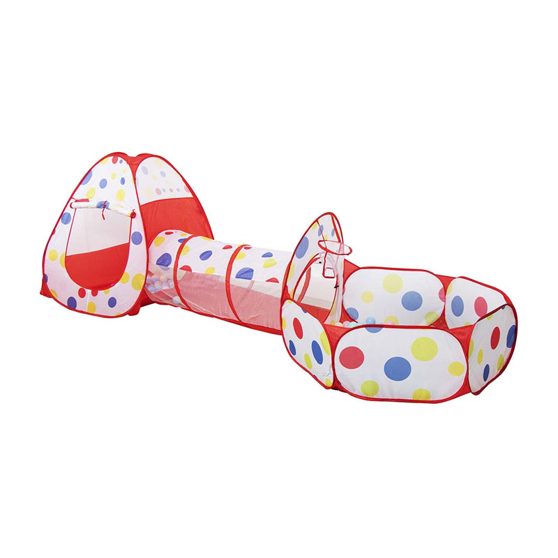 Το σετ, από την εταιρία Bakaji, αποτελείται από 1 πολύχρωμη σκηνή σε σχήμα πυραμίδας, 1 παιδότοπο για παιχνίδι και 1 τούνελ που τα συνδέει. Μπορούν να χρησιμοποιηθούν μαζί ή μεμονωμένα και μπορούν να φιλοξενήσουν έως 6-7 παιδιά. Ο εξαερισμός επιτυγχάνεται χάρη στο μαλακό ύφασμα από πολυεστέρα και το πλέγμα, το οποίο θα σας επιτρέψει να επιβλέπετε τα παιδιά κατά τη διάρκεια του παιχνιδιού. Χάρη στο αναδυόμενο σύστημα, μπορεί να ρυθμιστεί σε δευτερόλεπτα και διπλώνει εύκολα.