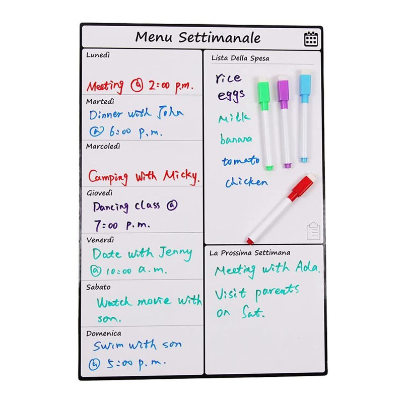 Ο μαγνητικός πίνακας μαρκαδόρου, από την εταιρία Bakaji, είναι κατασκευασμένος από PVC με μεγάλη λευκή επιφάνεια, η οποία μπορεί να χρησιμοποιηθεί για γραφή με τους πρακτικούς μαρκαδόρους που περιλαμβάνονται στη συσκευασία. Μπορεί να τοποθετηθεί εύκολα σε οποιαδήποτε μεταλλική επιφάνεια.