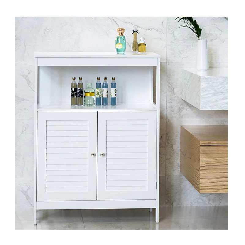 Το ντουλάπι μπάνιου, από την εταιρία Bakaji, είναι κατασκευασμένο εξ ολοκλήρου από ξύλο MDF σε κομψό λευκό χρώμα. Είναι εξοπλισμένο με 2 πόρτες με μαγνητικό κλείσιμο και μεταλλικά πόμολα. Στο εσωτερικό του, διαθέτει 2 ράφια για πετσέτες, προϊόντα ομορφιάς, αξεσουάρ και προϊόντα καθαρισμού. Επιπρόσθετα, έχει 1 ανοιχτό ράφι για επιπλέον χώρο αποθήκευσης.