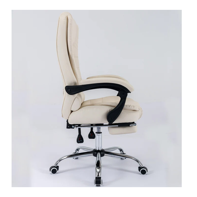 Η καρέκλα, είναι κατασκευασμένη εξ ολοκλήρου από υψηλής ποιότητας οικολογικό δέρμα. Το κάθισμα είναι πλήρως επενδεδυμένο με σφουγγάρι υψηλής έντασης που απελευθερώνει την πίεση του ισχίου και των ποδιών, προάγοντας έτσι την κυκλοφορία του αίματος κατά τη διάρκεια πολλών ωρών στον υπολογιστή. Η πλάτη ξαπλώνει έως και 160° και το άνετο αφαιρούμενο υποπόδιο θα σας επιτρέψει να απλώνεστε και να ξεκουράζεστε άνετα κατά τα διαλείμματά σας από την εργασία στον υπολογιστή.